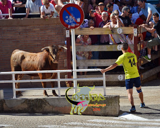 SAN ADRIAN: SUELTA DE VACAS DE CORRO GANADERIA :EULOGIO MATEO 25/07/2016