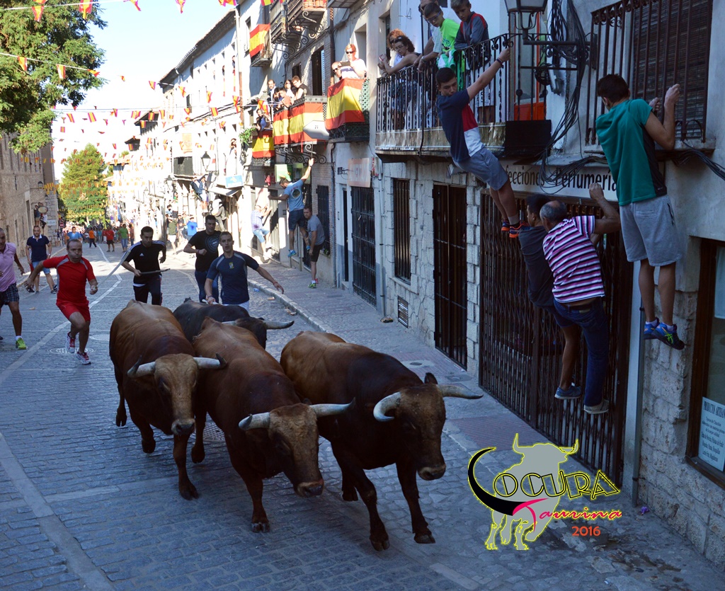 CHINCHON: ENCIERRO CON LAS RESES DE LOS RECORTES Y CON 2 DE CAPEA Y POSTERIOR CAPEA 14/08/2016