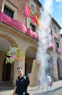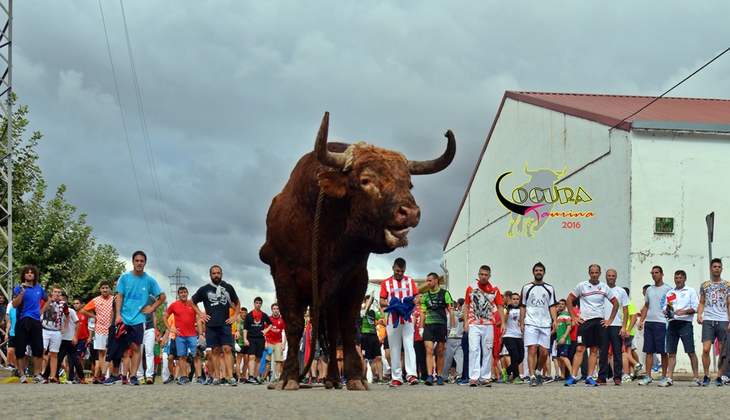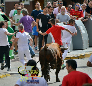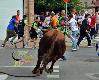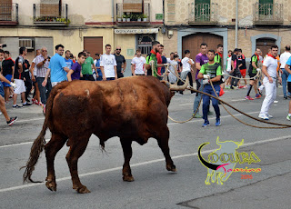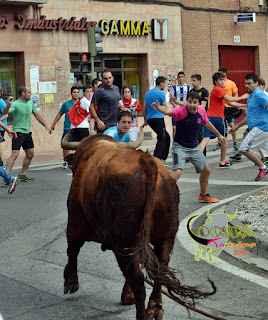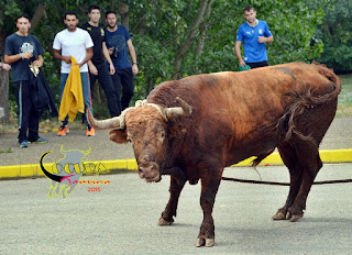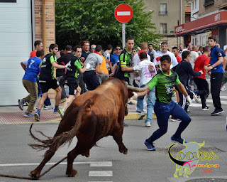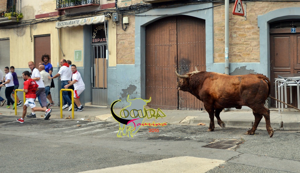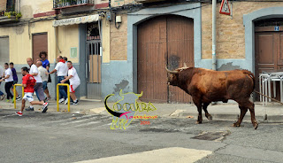 LODOSA: SUELTA DE UN TORO ENSOGADO GANADERIA :MERINO GARDE 16/09/2016